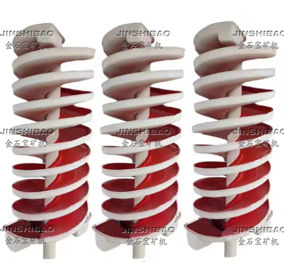 螺旋槽是设备的主体部件由玻璃钢(或者塑料)制成的螺旋片用螺栓连接而成,本设备具有选别过程稳定,容易控制,给矿浓度允许变化范围大,富集比高,回收率高,占地面积小,耗水量少,结构简单,无需动力,处理量大,安装简易.操作方便,投资小见效快等优点。